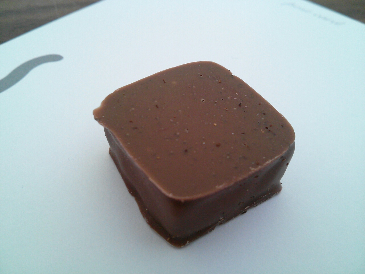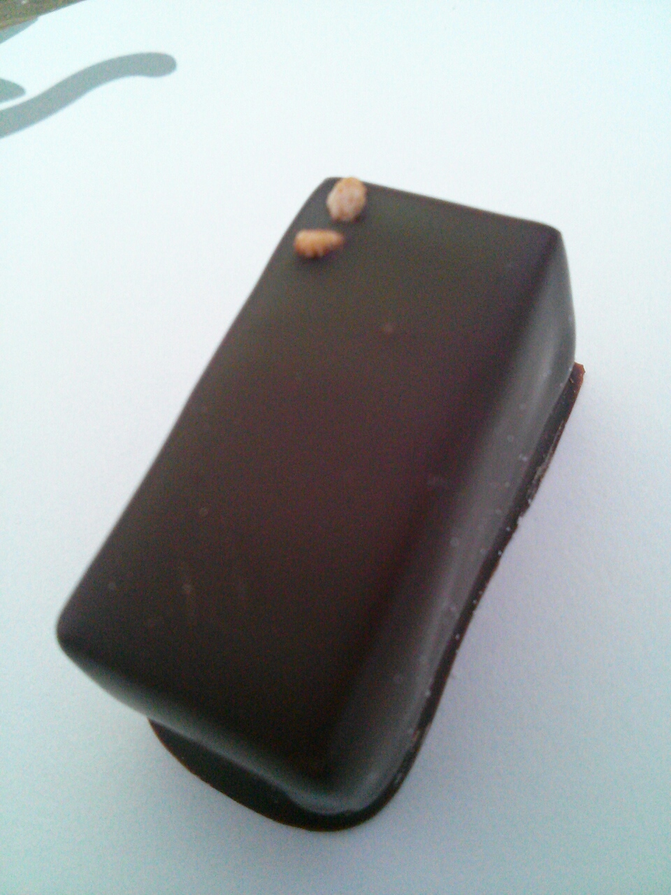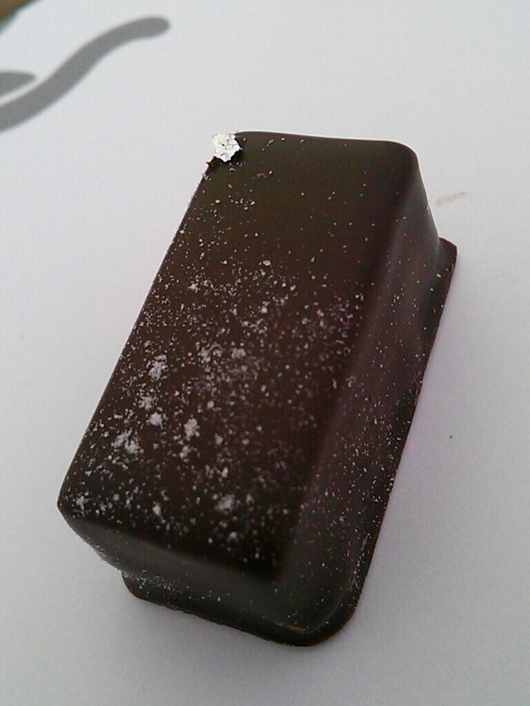 中は日本酒ガナッシュとダークガナッシュの二層。あんまり日本酒の味はしなかったかな?でもお上品な感じでした。ダークがほんのりでおいしい~