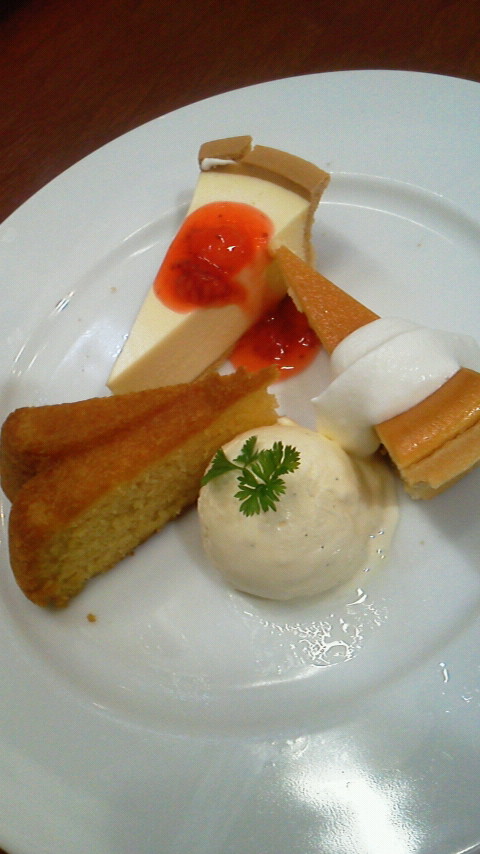 アーモンドケーキ・ベイクドチーズケーキ・レアチーズケーキとアイスの4種。
