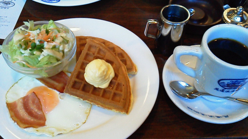 尾道に行ったときにモーニングで食べたワッフル。