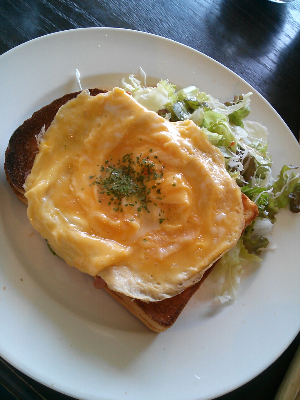 頂いたのは、クロックマダムサンド。卵と生ハムとチーズ!