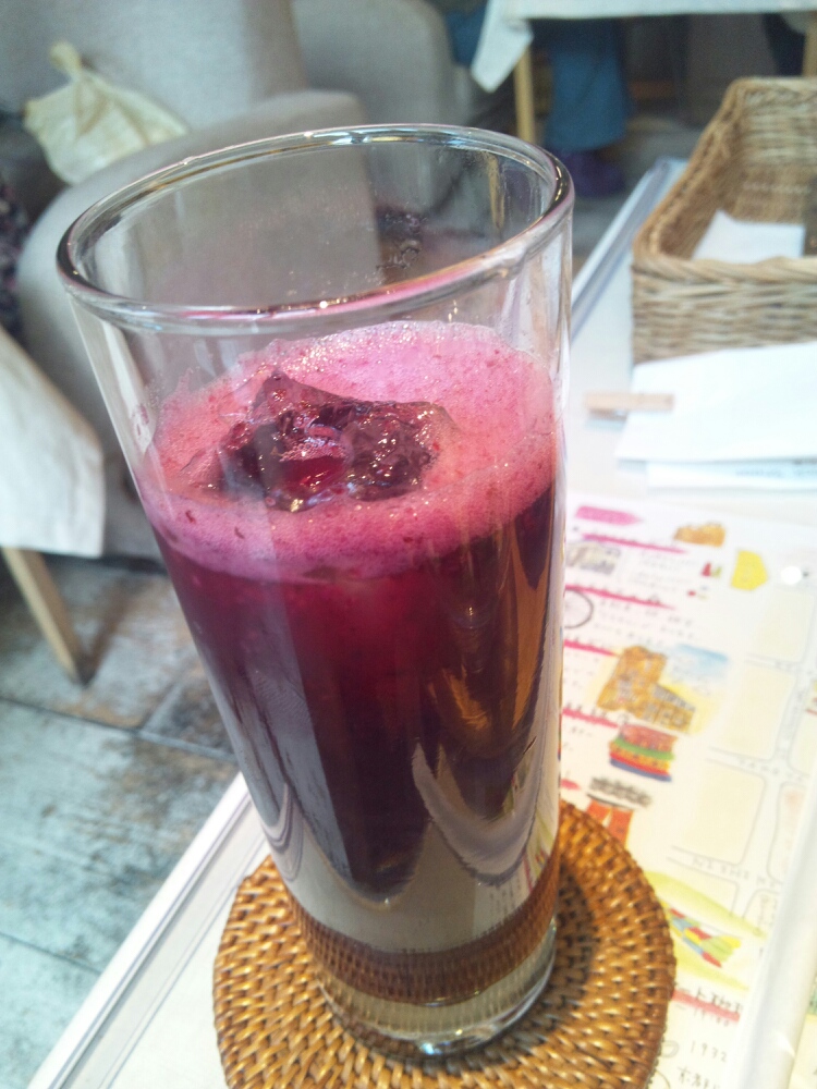 頂いたのは、枝豆のポタージュとベリーの紫野菜ジュース。
